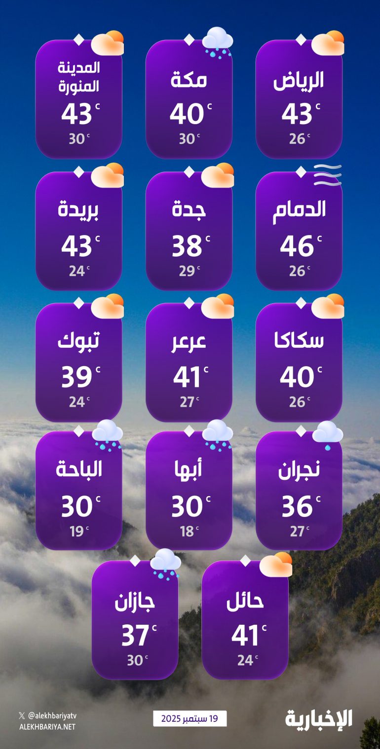 درجات الحرارة والطقس المتوقع ليوم الجمعة 19 سبتمبر 2025