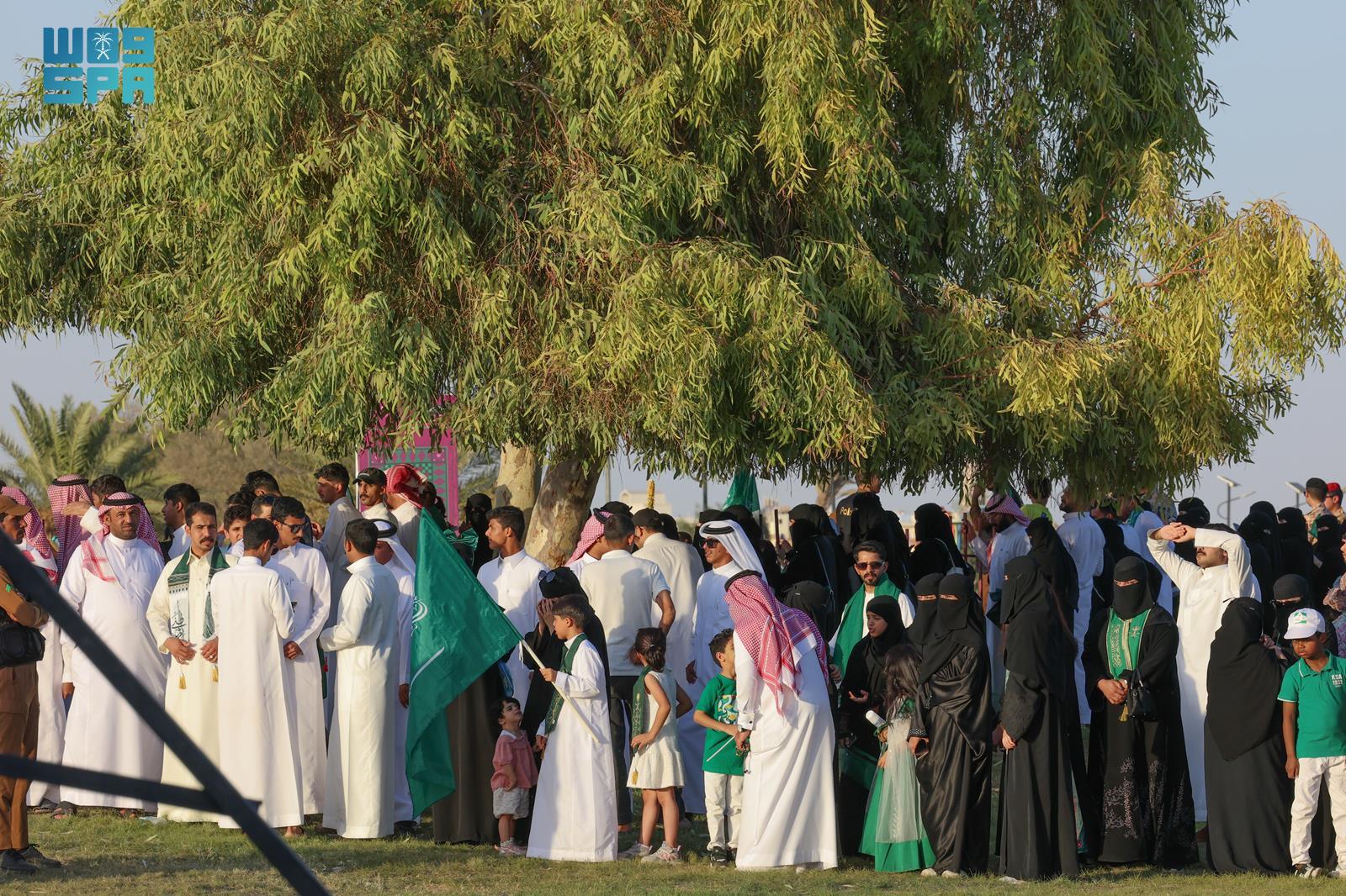 وعبّر الأهالي عن اعتزازهم بالمشاركة في هذه المناسبة الوطنية الغالية، فيما تشهد مدن ومحافظات المنطقة فعاليات ترفيهية وثقافية متنوعة.