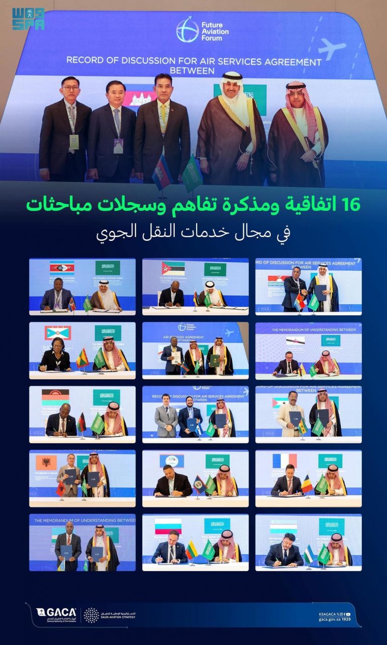 وقّعت المملكة العربية السعودية، خلال اجتماعات الجمعية العمومية الـ (42) لمنظمة الطيران المدني الدولي (الإيكاو) المقامة خلال الفترة من 23 سبتمبر إلى 3 أكتوبر في مونتريال بكندا، عددًا من الاتفاقيات الثنائية ومذكرات التفاهم مع (17) دولة، في خطوة تعكس حرصها على تعزيز حضورها الدولي في مجال الطيران والنقل الجوي، إلى جانب وضع أطر تنظيمية لحركة النقل الجوي وتعزيز قواعد ومعايير السلامة الجوية وأمن الطيران المدني، وزيادة الخيارات المتاحة أمام المسافرين.