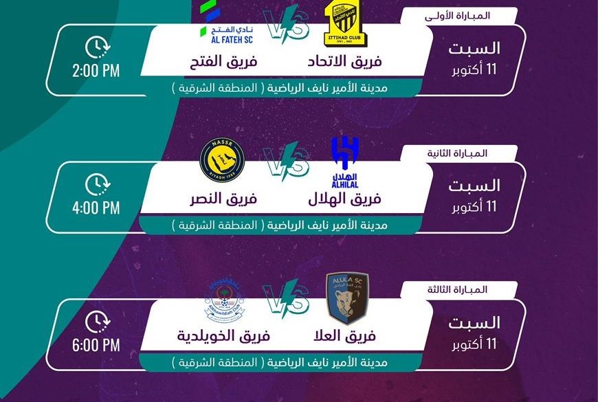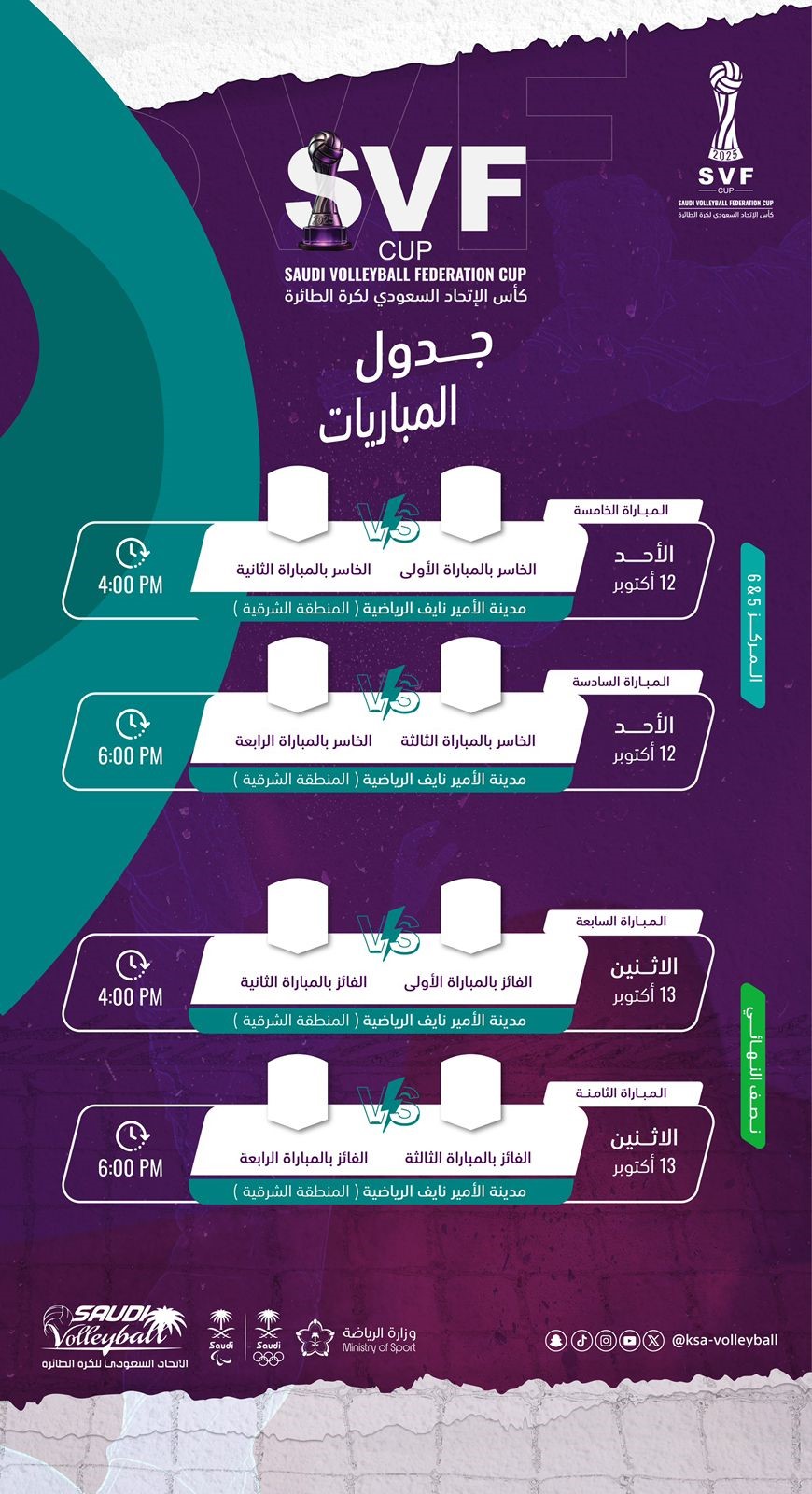 ومن المقرر أن تُقام مباريات دور الثمانية يوم السبت المقبل الموافق 11 اكتوبر على صالة مدينة الأمير نايف الرياضية بالقطيف ويقام النهائي يوم 16 أكتوبر 2025م