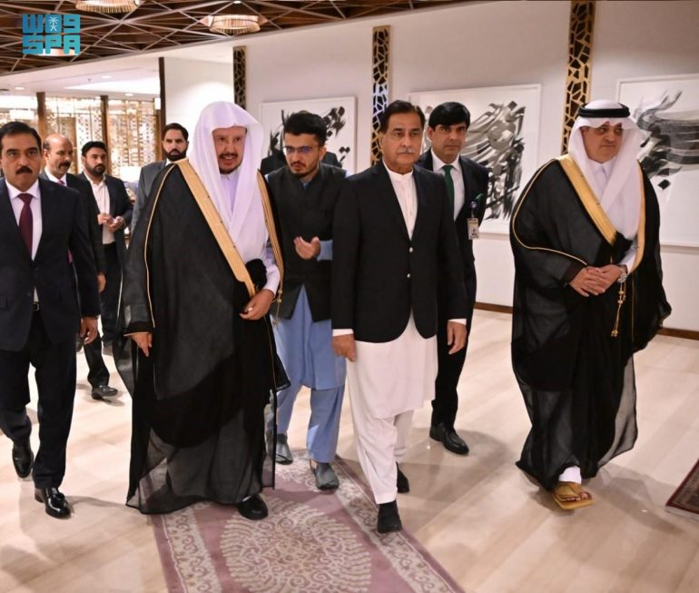 ‏‎وكان في استقبال معاليه بمطار إسلام أباد الدولي معالي رئيس الجمعية الوطنية الباكستانية سردار أياز صادق، كما كان في استقبال معاليه سفير خادم الحرمين الشريفين لدى جمهورية باكستان نواف بن سعيد المالكي، وعددٌ من كبار المسؤولين في الجمعية الوطنية الباكستانية.