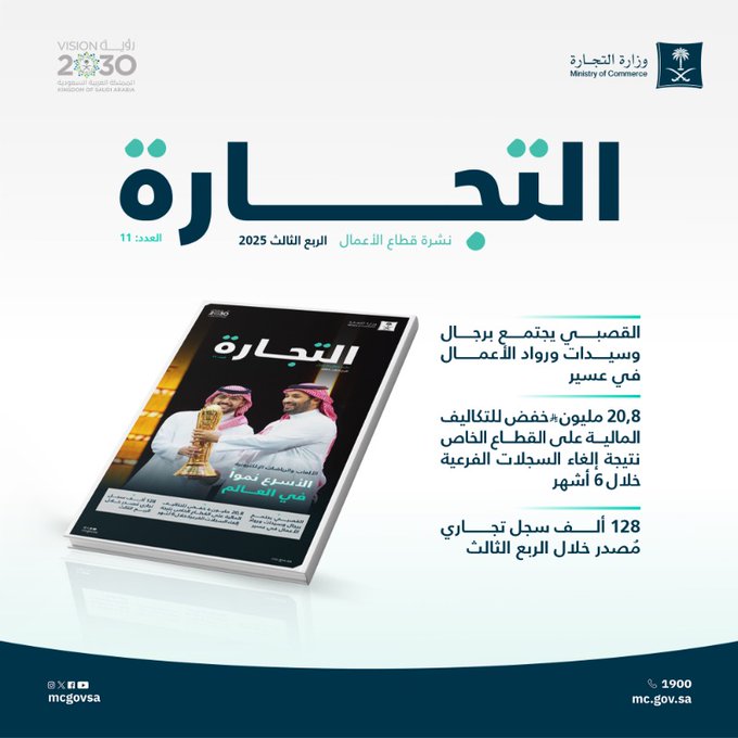 كشفت وزارة التجارة عن إصدارها 128 ألف سجل تجاري خلال الربع الثالث من 2025، ليصل إجمالي السجلات إلى أكثر من “1.7” مليون سجل تجاري بجميع مناطق المملكة.