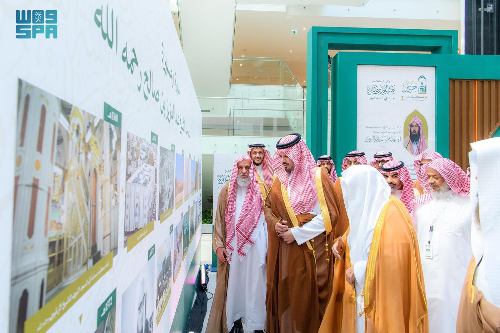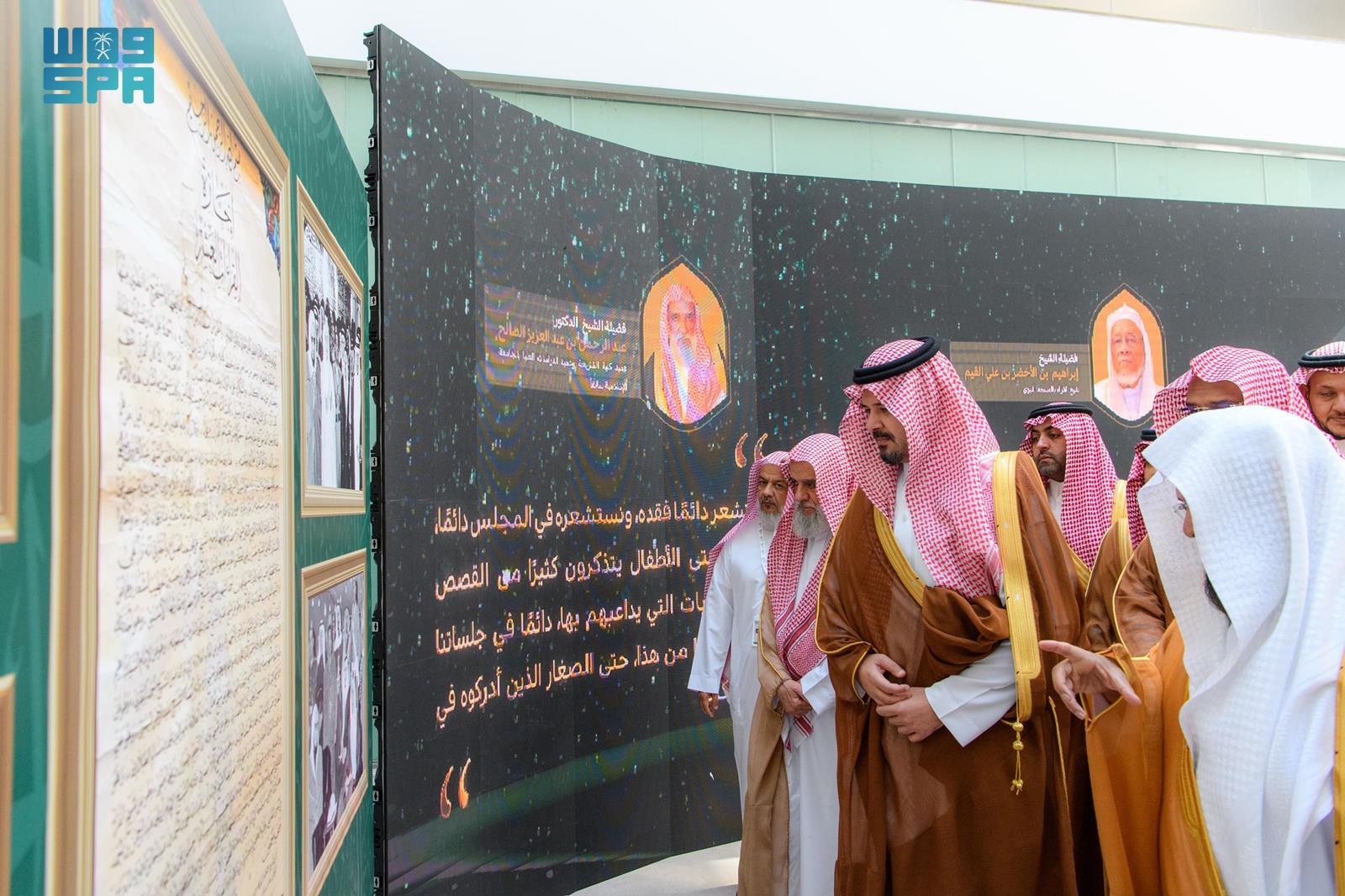 واطّلع سموه خلال زيارته للمعرض المصاحب للملتقى على الأجنحة المشاركة، التي تضمّنت صورًا تاريخية توثّق سيرة ومسيرة سماحة الشيخ عبدالعزيز بن صالح -رحمه الله-، إلى جانب شاشة عرض خُصصت للأفلام والمواد المرئية التي تناولت سيرته العطرة، ومقاطع من خطبه وتلاواته، بالإضافة إلى ركنٍ لمدرسة الشيخ ابن صالح الابتدائية.