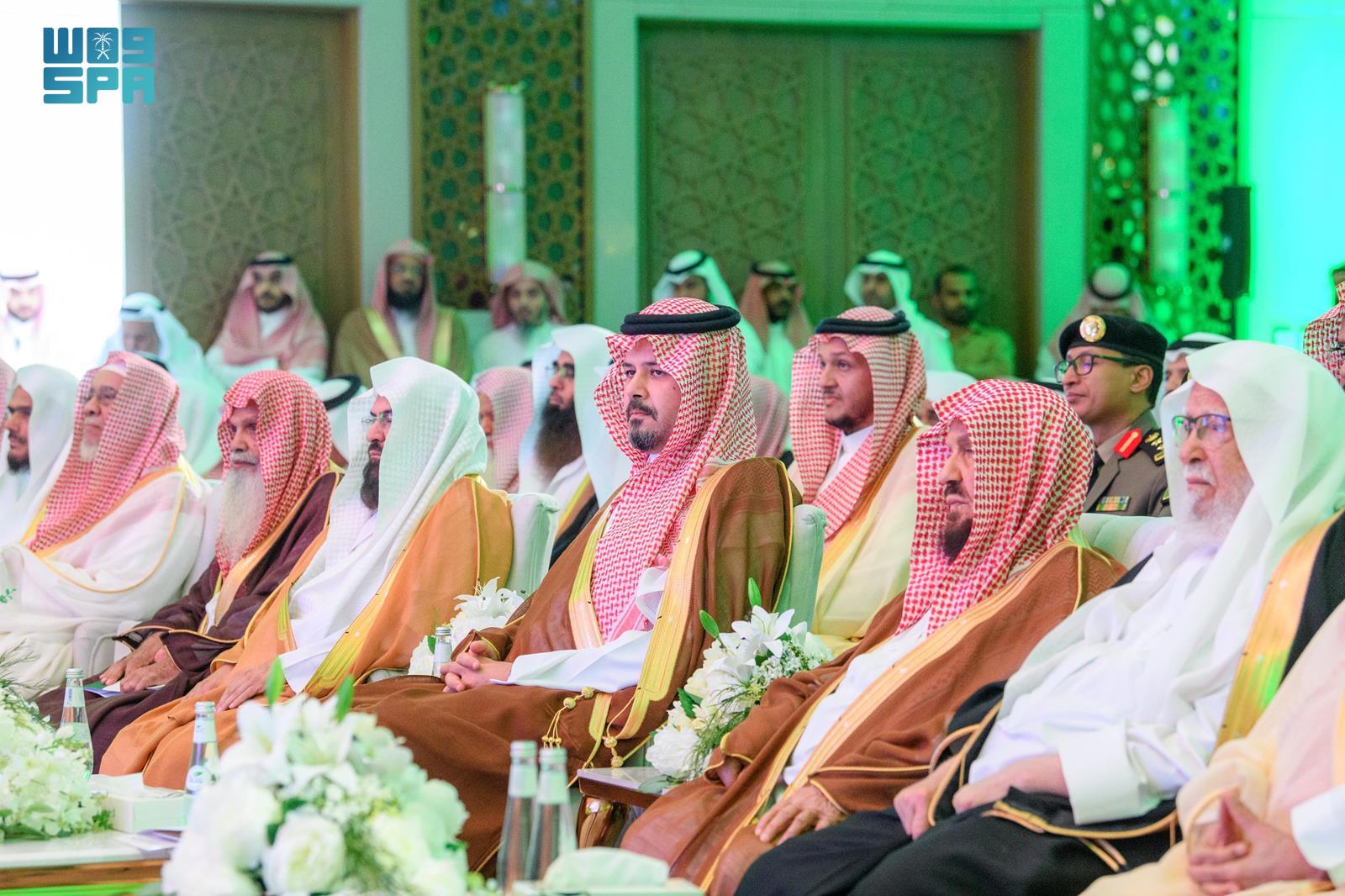 عقب ذلك، ألقى معالي الشيخ الدكتور عبدالرحمن بن عبدالعزيز السديس، رئيس الشؤون الدينية بالمسجد الحرام والمسجد النبوي، كلمةً رحّب فيها بسمو أمير المنطقة، مشيدًا برعايته لهذا الملتقى المبارك الذي يجسد عناية القيادة الرشيدة بالعلم والعلماء، وتقدير جهودهم في خدمة الحرمين الشريفين والعلم والدعوة إلى الله تعالى.