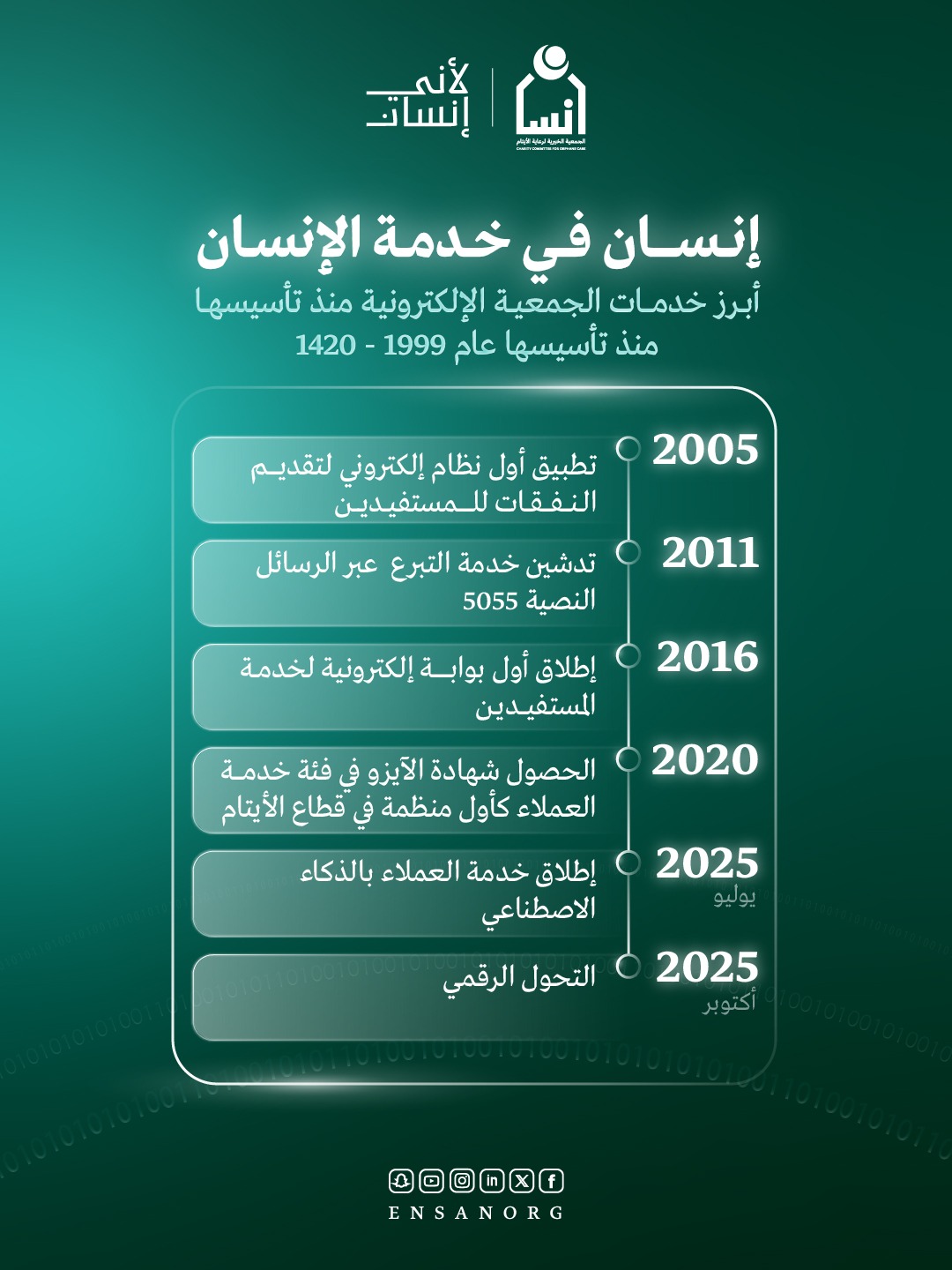 دشنت جمعية إنسان برنامج التحول الرقمي في خطوة نوعية تعكس التزامها بمواكبة التطورات التقنية لتعزيز جودة خدماتها وتوسيع أثرها الإنساني.