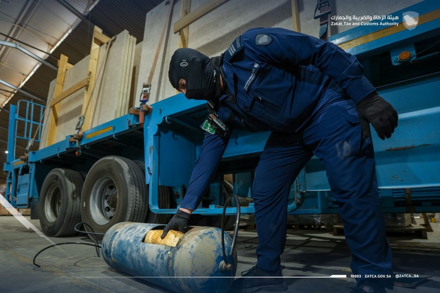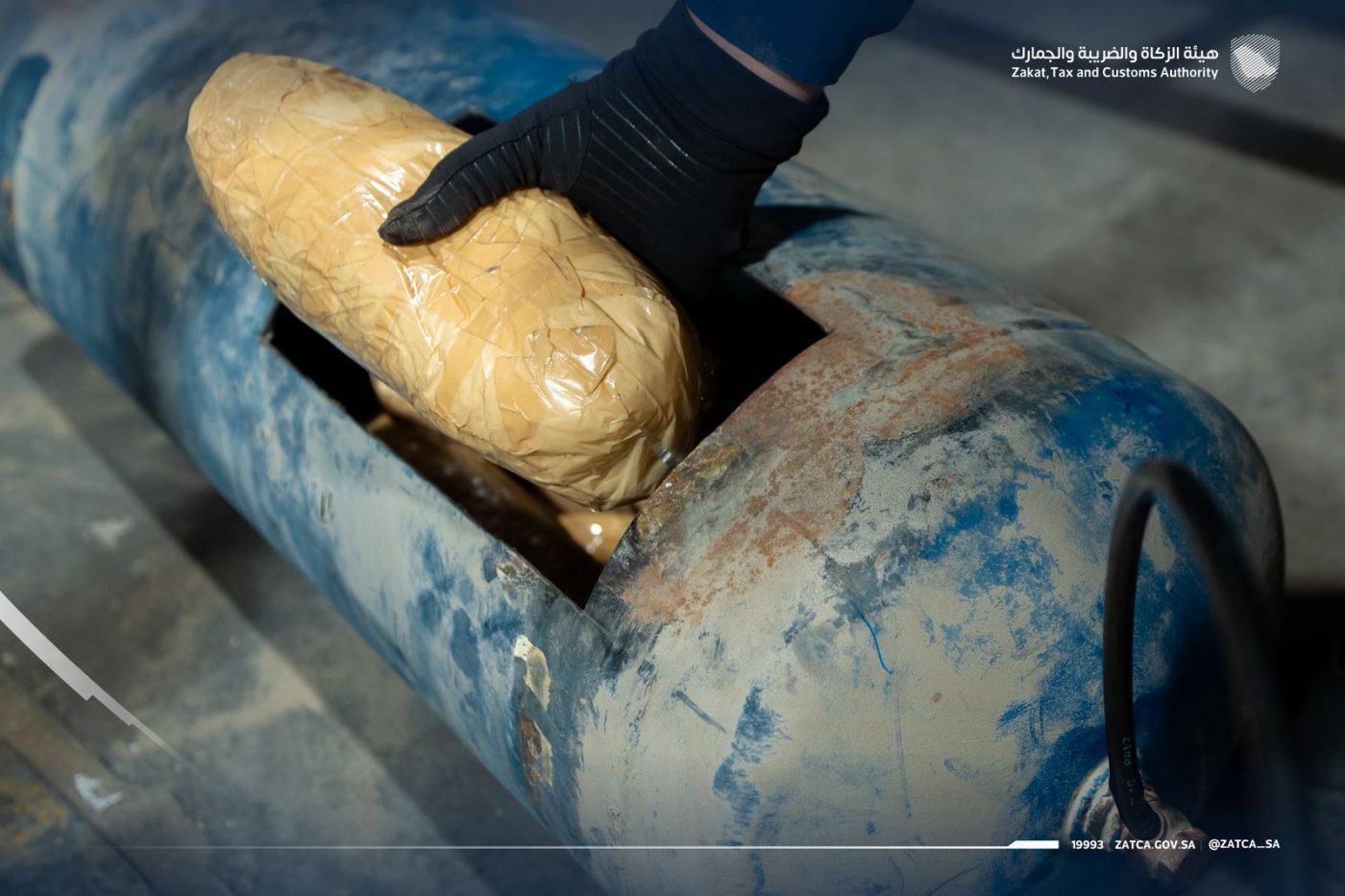 وأوضح المتحدث الرسمي باسم “زاتكا” حمود الحربي بأنه عند خضوع إحدى الشاحنات القادمة للإجراءات الجمركية والكشف عليها عبر التقنيات الأمنية، عُثر على تلك الكمية من مادة “الشبو” مُخبأة أسفل خزان الهواء الخاص بالشاحنة.