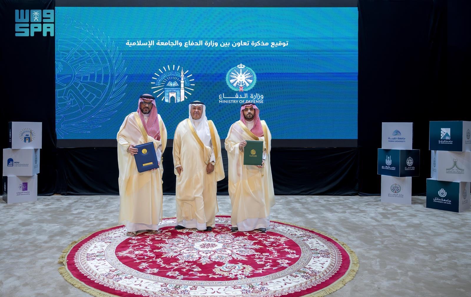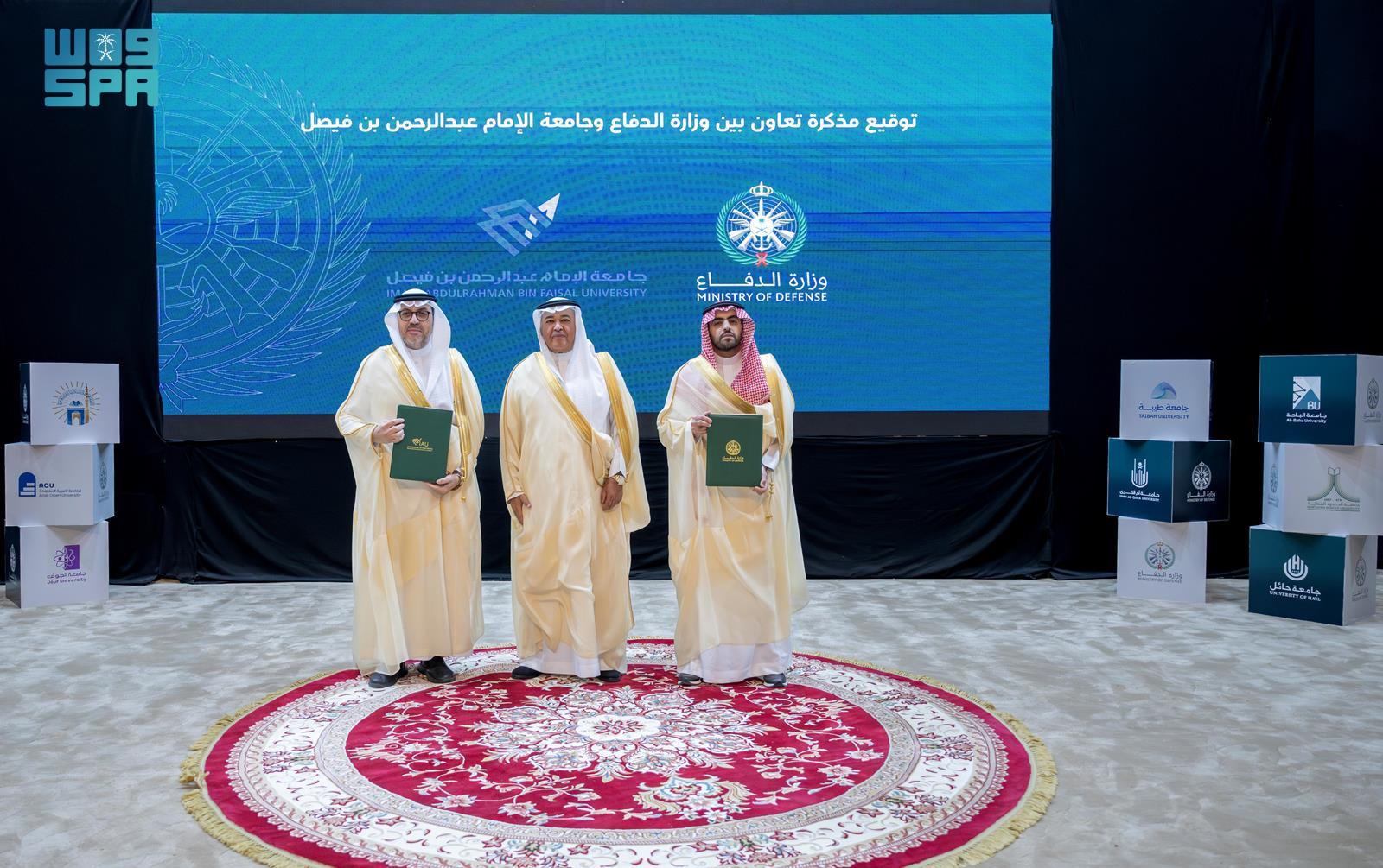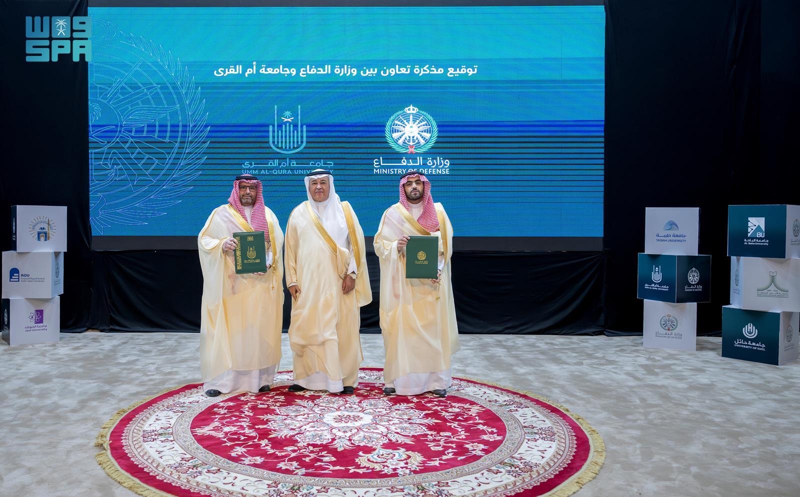 ووقع مذكرات التعاون من جانب وزارة الدفاع وكيل الوزارة لخدمات التميز المهندس محمد بن فيصل بن معمر، ومن جانب الجامعات، رؤساء الجامعات التالية: جامعة أم القرى، والجامعة الإسلامية، وجامعة الإمام عبدالرحمن بن فيصل، وجامعة طيبة، وجامعة الجوف، وجامعة حائل، وجامعة الباحة، وجامعة الحدود الشمالية، وجامعة بيشة، والجامعة العربية المفتوحة.