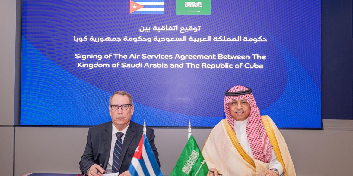 وقع معالي رئيس الهيئة العامة للطيران المدني الأستاذ عبدالعزيز بن عبدالله الدعيلج في مقر مبنى الهيئة الرئيس بالرياض اليوم، اتفاقيةً في مجال خدمات النقل الجوي بين حكومة المملكة العربية السعودية وحكومة جمهورية كوبا، التي مثلها سفير جمهورية كوبا لدى المملكة ماجيل بورتو بارجا، وذلك ضمن أعمال الزيارة الرسمية لرئيس مجلس الوزراء الكوبي لحضور مؤتمر مبادرة مستقبل الاستثمار في نسخته التاسعة في الرياض.