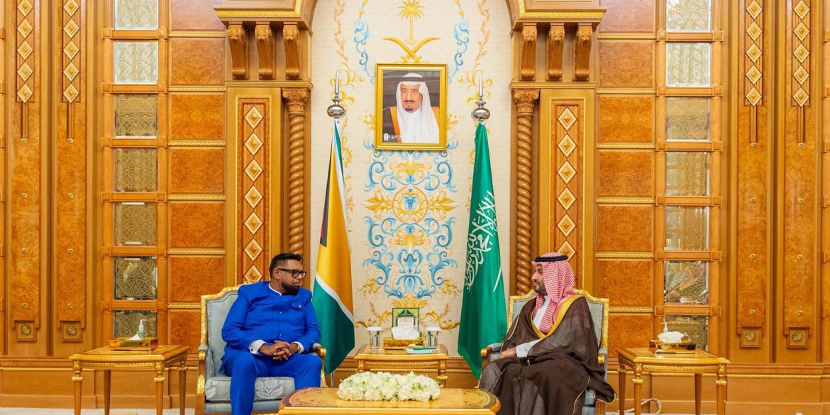 التقى صاحب السمو الملكي الأمير محمد بن سلمان بن عبدالعزيز آل سعود ولي العهد رئيس مجلس الوزراء، اليوم، فخامة الرئيس محمد عرفان علي رئيس جمهورية غويانا التعاونية والوفد المرافق له، وذلك على هامش انعقاد النسخة التاسعة من مؤتمر مبادرة مستقبل الاستثمار، في مركز الملك عبدالعزيز الدولي للمؤتمرات بالرياض.