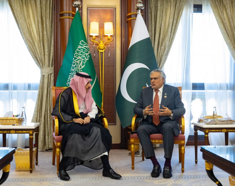 التقى صاحب السمو الأمير فيصل بن فرحان بن عبدالله وزير الخارجية، في الرياض، اليوم، معالي نائب رئيس الوزراء وزير خارجية جمهورية باكستان الإسلامية إسحاق دار، وذلك على هامش زيارة معاليه للمملكة للمشاركة في مؤتمر مبادرة مستقبل الاستثمار 2025.