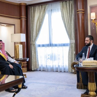 وجرى خلال الاستقبال استعراض العلاقات بين البلدين الشقيقين، وسبل تعزيزها وتطويرها في مختلف المجالات، بالإضافة إلى مناقشة قنوات التعاون الاقتصادي في قطاعات الطاقة والصناعة والبنية التحتية والتقنية وغيرها في ظل رغبة قيادتي البلدين في تحقيق الاستقرار الاقتصادي في سوريا، وتنمية العلاقات الثنائية بما يحقق تطلعات قيادتي وشعبي البلدين الشقيقين.