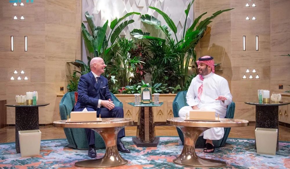 التقى صاحب السمو الملكي الأمير محمد بن سلمان بن عبدالعزيز آل سعود، ولي العهد رئيس مجلس الوزراء، في مكتب سموه بقصر اليمامة في الرياض اليوم، رئيس الاتحاد الدولي لكرة القدم السيد جياني إنفانتينو.