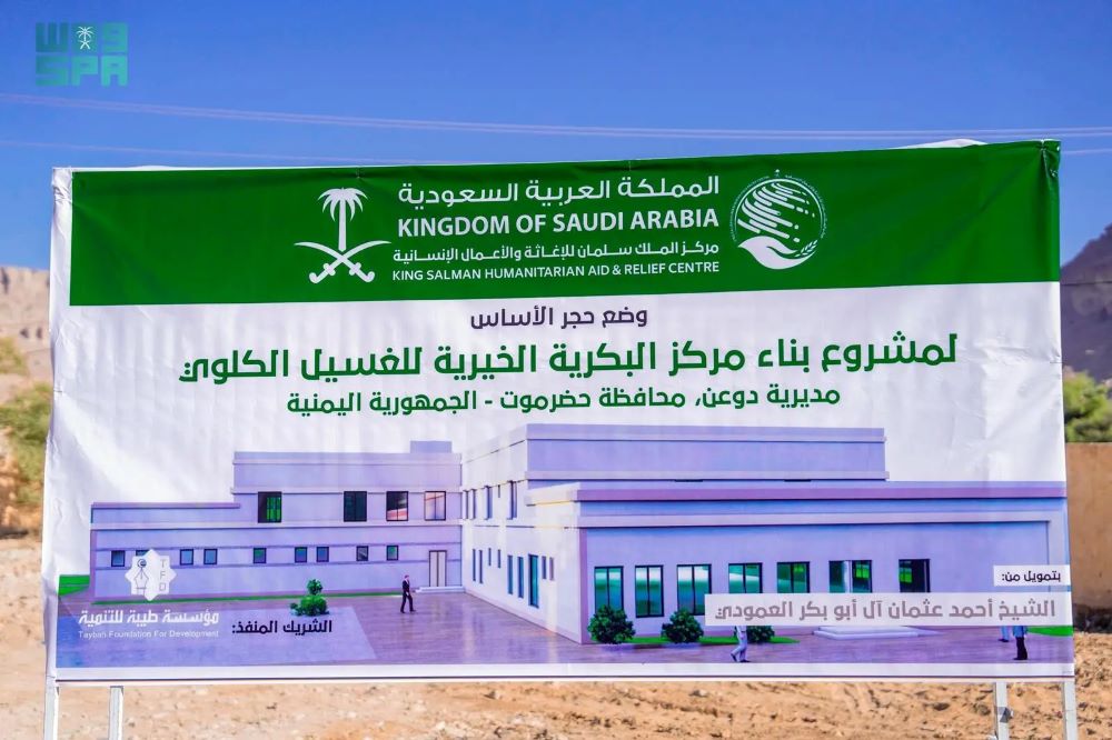وضع مركز الملك سلمان للإغاثة والأعمال الإنسانية حجر الأساس لمشروع بناء مركز البكرية الخيري للغسيل الكلوي في مديرية دوعن بمحافظة حضرموت، يستفيد منه (49) فردًا بشكل مباشر و(79.545) فردًا بشكل غير مباشر.