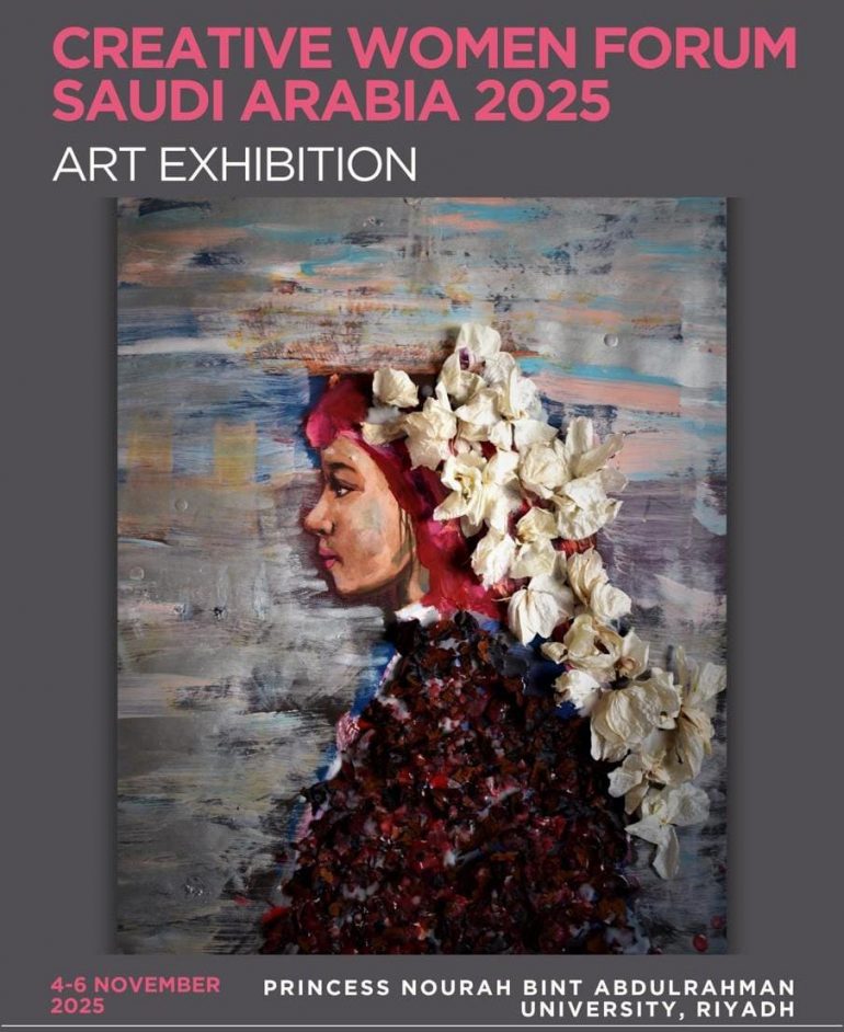من المقرر افتتاح معرض فني، يضم فنانات وحرفيات حاصلات على جوائز مرموقة خلال النسخة الثانية من منتدى النساء المبدعات في المملكة العربية السعودية لعام 2025، الذي يُعقد برعاية كريمة من صاحبة السمو الملكي الأميرة نورة بنت سعود بن نايف بن عبدالعزيز آل سعود، وذلك في جامعة الأميرة نورة بنت عبدالرحمن والمتحف الوطني السعودي، من 4 إلى 6 نوفمبر 2025.