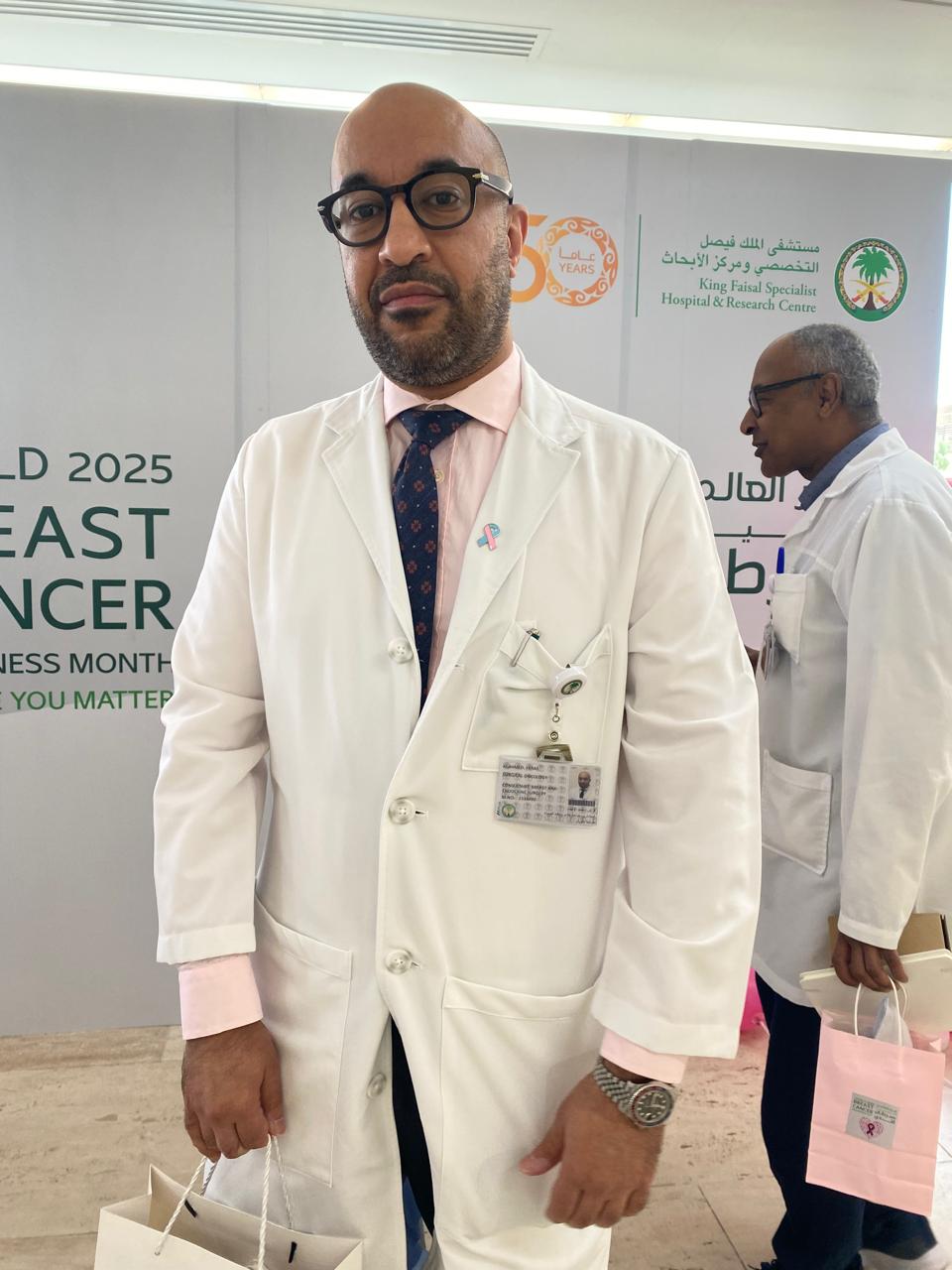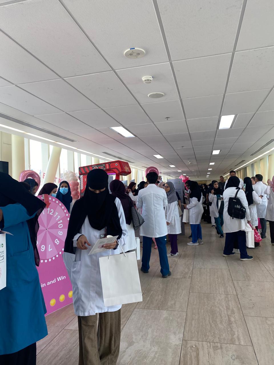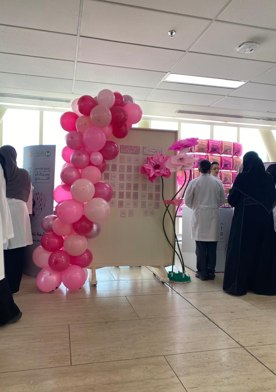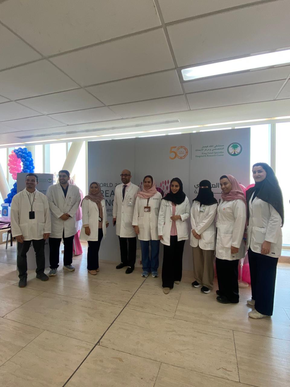 أقام مستشفى الملك فيصل التخصص ومركز الأبحاث بالرياض فعالية توعوية لسرطان الثدي في برج الملك عبدالله للأورام بمشاركة جميع أقسام علاج أورام الثدي.