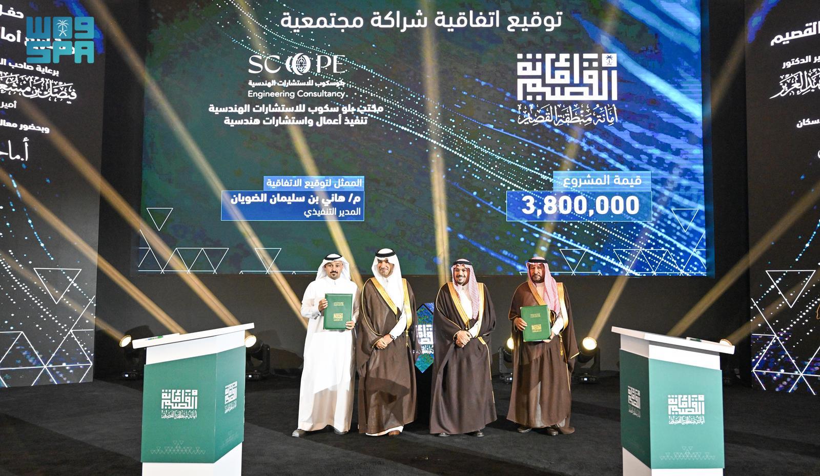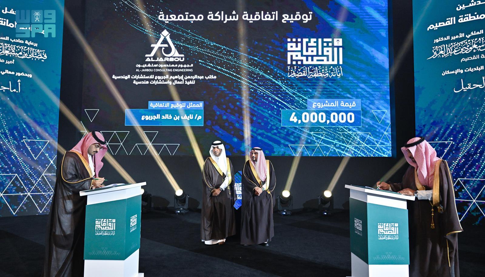 وشهد الحفل توقيع عددٍ من اتفاقيات المشاركة المجتمعية بين أمانة القصيم وعددٍ من الشركاء، تضمنت دعم مشروع إكرام الموتى النموذجي ببريدة، وتنفيذ حديقتين بحي الحزم، وتطوير طريق أم المؤمنين عائشة -رضي الله عنها- وطريق أبي بكر الصديق -رضي الله عنه-، إلى جانب تنفيذ أعمالٍ واستشاراتٍ هندسية.