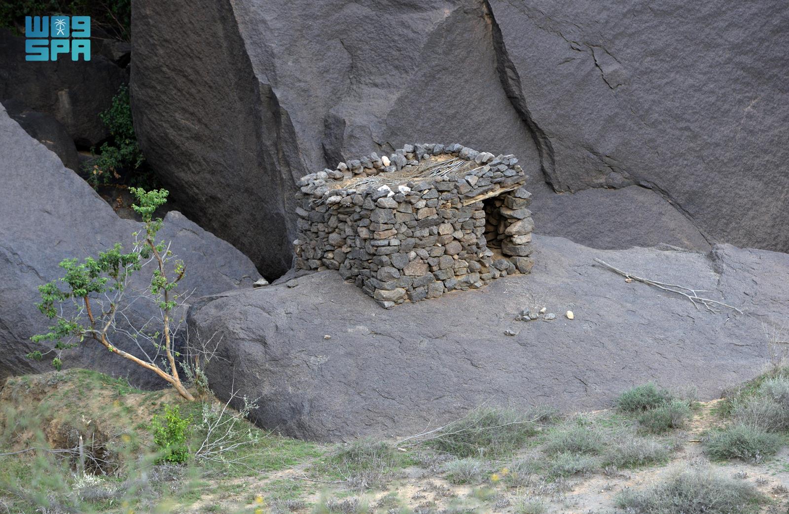 أما في تهامة عسير، وتحديدًا في جبل «أحد ثربان» غرب محافظة المجاردة، فتأخذ مدافن الحبوب شكلًا مختلفًا يناسب طبيعة المكان، فهناك تنتشر المباني الحجرية المعروفة محليًّا باسم “المُغلَّقة”، وهي بيوت حجرية صغيرة مشيدة فوق الصخور النارية الصلبة، تُستخدم لحفظ محاصيل الذرة والشعير والسمسم بعد الحصاد. وتتميز هذه “المُغلقة” بباب صغير محكم الإغلاق يمنع تسرب الرطوبة، ولا تحتوي عادة على نوافذ، لضمان بقاء الحبوب في بيئة جافة ومحفوظة لفترات طويلة، وهو ما جعلها تؤدي دور الصوامع الطبيعية منذ مئات السنين.