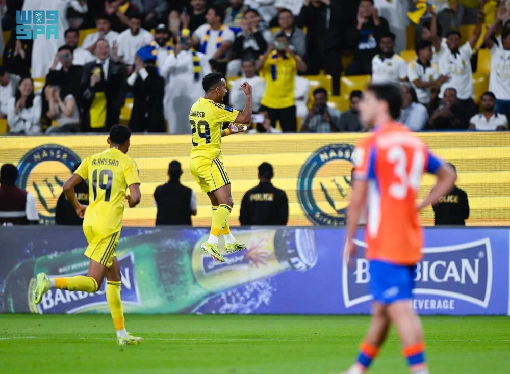 جاءت أهداف النصر عن طريق اللاعب عبدالرحمن غريب عند الدقائق (34) و (52)، ومحمد مران عند الدقيقة (65)، وجواو فيلكس عند الدقيقة (84).