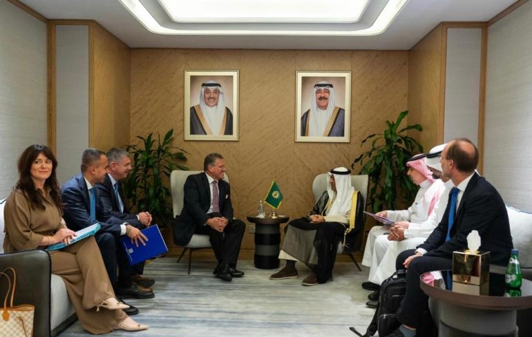 التقى معالي الأمين العام لمجلس التعاون لدول الخليج العربية الأستاذ جاسم محمد البديوي مفوّض الاتحاد الأوروبي لشؤون التجارة والأمن الاقتصادي، وللعلاقات المؤسسية والشفافية ماروش شيفتشوفيتش اليوم في الكويت، وذلك على هامش أعمال المنتدى الخليجي – الأوروبي الاقتصادي التاسع.
