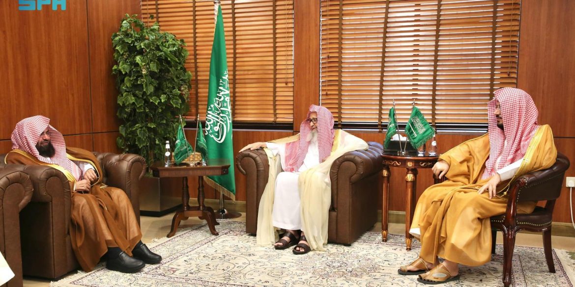 وهنأ معاليه خلال الاستقبال، سماحة المفتي العام بالثقة الملكية بتعيينه مفتيًا عامًا للمملكة ورئيسًا لهيئة كبار العلماء والبحوث العلمية والإفتاء.