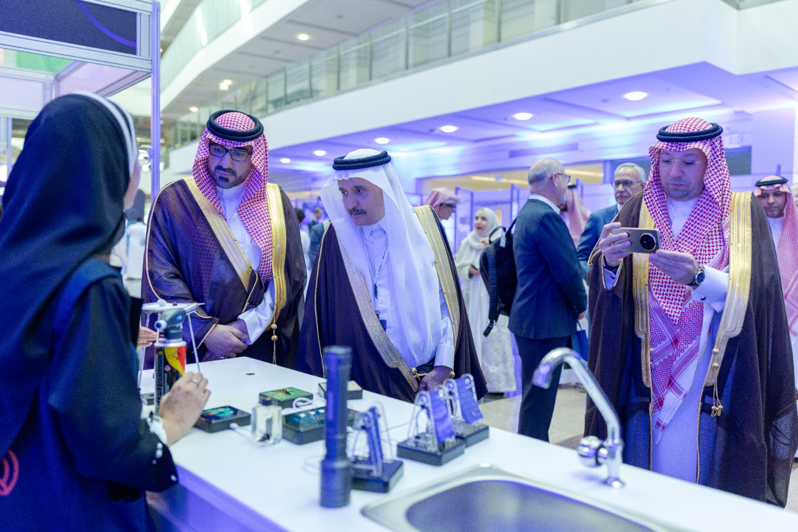 عقب افتتاح المعرض المصاحب، تجوّل الحضور بين أجنحته المتعددة واطلعوا على أكثر من ستين مشروعًا بحثيًا ضمن الهاكثون العلمي المصاحب للمؤتمر.