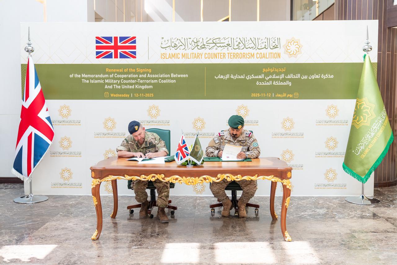 أبرم التحالف الإسلامي العسكري لمحاربة الإرهاب اليوم الأربعاء بمقره بمدينة الرياض، مذكرة تعاون مشترك مع حكومة المملكة المتحدة، وتهدف هذه المذكرة إلى بناء ودعم التعاون بين الجانبين في مجالات محاربة الإرهاب والتطرف ولا سيّما في المجالات الأربعة (الفكري، والإعلامي، ومحاربة تمويل الإرهاب والمجال العسكري).