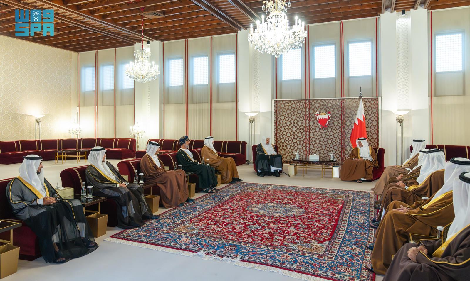 استقبل صاحب السمو الملكي الأمير سلمان بن حمد آل خليفة ولي العهد رئيس مجلس الوزراء بمملكة البحرين، اليوم في المنامة، معالي رئيس مجلس الشورى الشيخ الدكتور عبدالله بن محمد بن إبراهيم آل الشيخ وأصحاب المعالي ورؤساء المجالس التشريعية بدول مجلس التعاون لدول الخليج العربية, ومعالي رئيس البرلمان العربي، وذلك بمناسبة الاجتماع الدوري التاسع عشر لرؤساء مجالس الشورى والنواب والوطني والأمة لدول الخليج العربية الذي يعقد غدًا في المنامة.