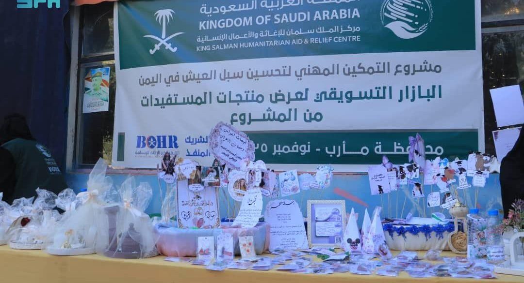 نظم مركز الملك سلمان للإغاثة والأعمال الإنسانية معرضًا تسويقيًا (بازار) للمستفيدات من مشروع التمكين المهني لتحسين سبل العيش في محافظة مأرب.
