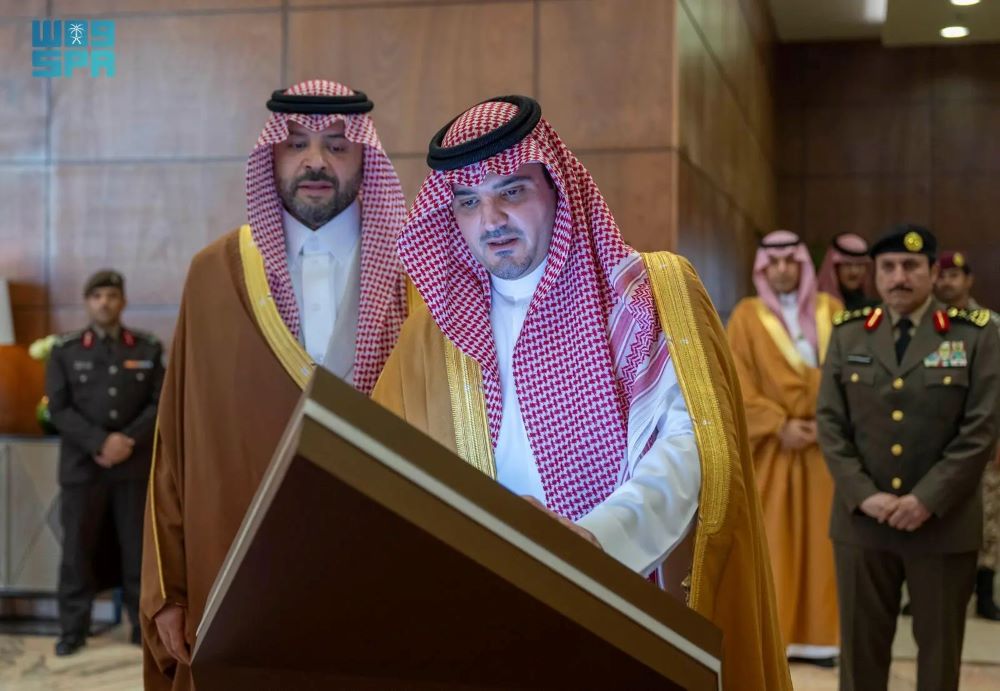 وضع صاحب السمو الملكي الأمير عبدالعزيز بن سعود بن نايف بن عبدالعزيز وزير الداخلية، اليوم، بحضور صاحب السمو الملكي الأمير فيصل بن خالد بن سلطان بن عبدالعزيز أمير منطقة الحدود الشمالية، حجر الأساس لمقر قيادة القوة الخاصة للأمن البيئي في منطقة الحدود الشمالية.