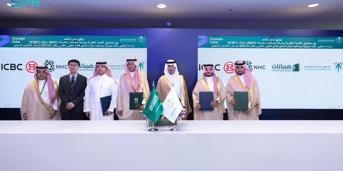 وتهدف المذكرة إلى دراسة وتطوير آليات تمويلية وضمانية مبتكرة لتمكين قطاع التطوير العقاري من التعاقد بنظام EPC+F مع كبار المقاولين الصينيين واستكشاف الفرص المشتركة لتصميم وتطوير برامج ومنتجات تمويلية جديدة تدعم أعمال القطاع وتمكّنه من تنفيذ المشاريع الإسكانية بكفاءة أعلى.