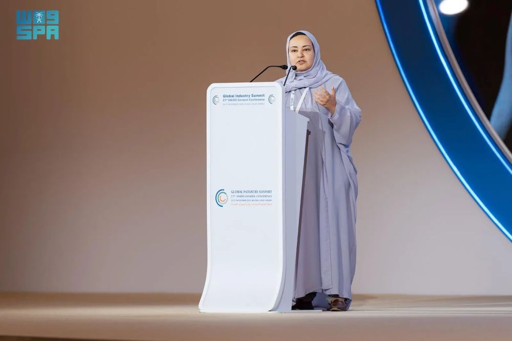 واستعرضت جهود تمكين الجيل الجديد من القائدات السعوديات، والدور المشترك للحكومة والجامعات والقطاع الصناعي في تطوير المواهب النسائية وتعزيز مساهمتها في التنمية الصناعية المستدامة.