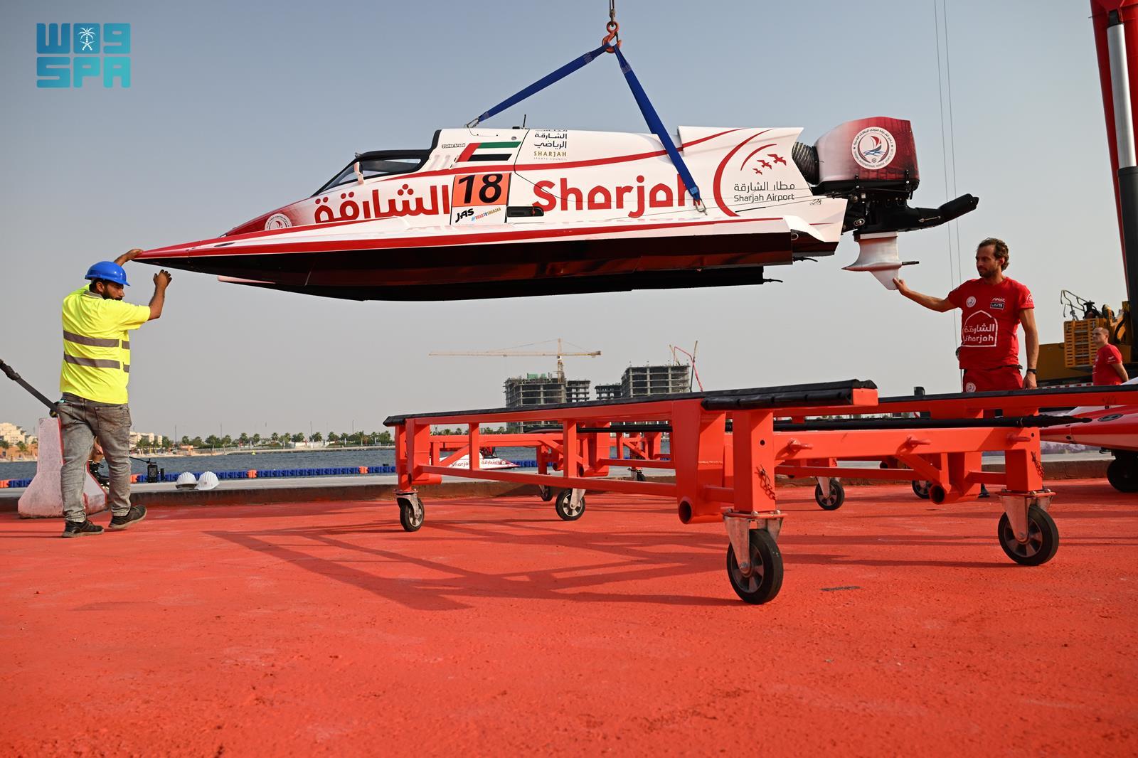 وعكست مشاهد التجهيز حجم العمل اللوجستي المصاحب للبطولة، حيث تتولى الفرق الفنية معاينة كل جزء من الزوارق ذات المواصفات العالية، والتأكد من جاهزية المحركات وأنظمة الملاحة والهيكل الانسيابي الذي يُعد العنصر الأهم في سباقات السرعة البحرية، حيث يشارك في البطولة قرابة (10) فرق عالمية تمثل نخبة أبطال الفورمولا 1 البحرية، ويتنافسون بـ(20) زورقًا ضمن واحدة من أبرز الجولات الدولية في روزنامة الرياضات البحرية.