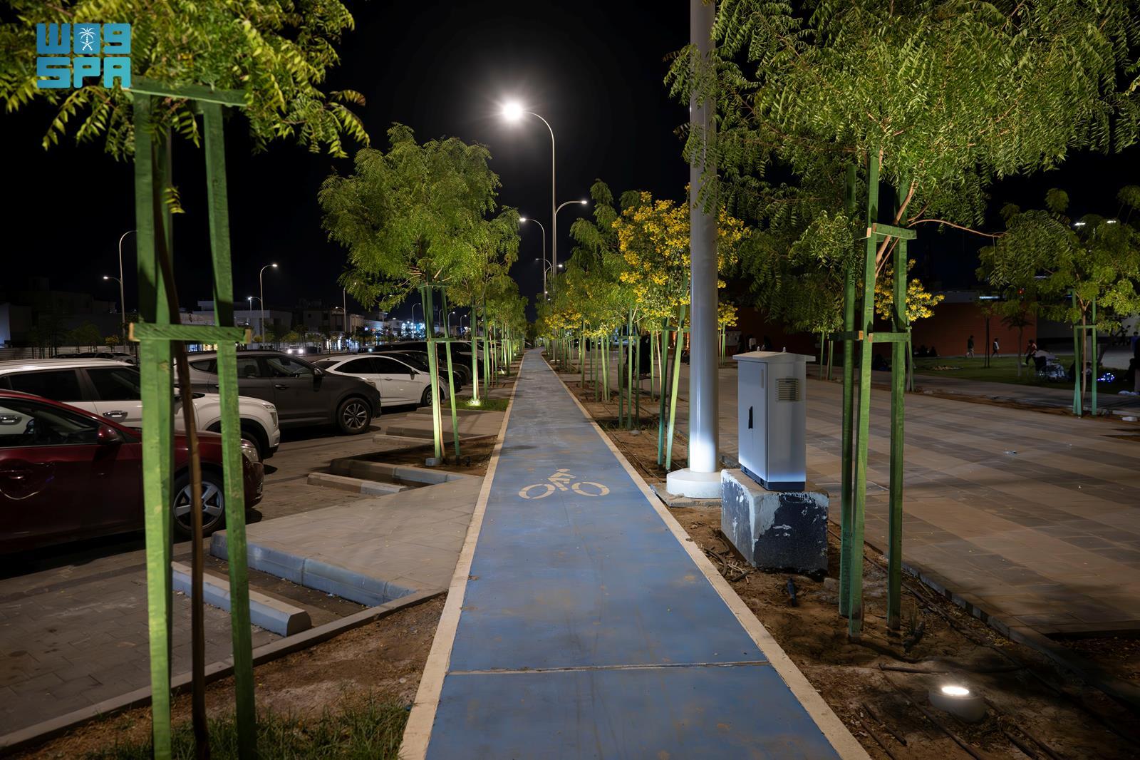 ويضم مرافق متعددة تشمل مسارًا مخصصًا للمشي بطول كيلومتر واحد، ومسارًا للدراجات الهوائية بمسافة 870 مترًا، إلى جانب ستة مشارب للماء، وموقف للحافلات على مساحة 1400 متر مربع، ومنطقة ألعاب للأطفال بمساحة 4,400 متر مربع، وساحة ألعاب تفاعلية للأطفال بقطر 49 مترًا، ونافورة تفاعلية بقطر 25 مترًا، إضافة إلى 340 موقفًا للسيارات.