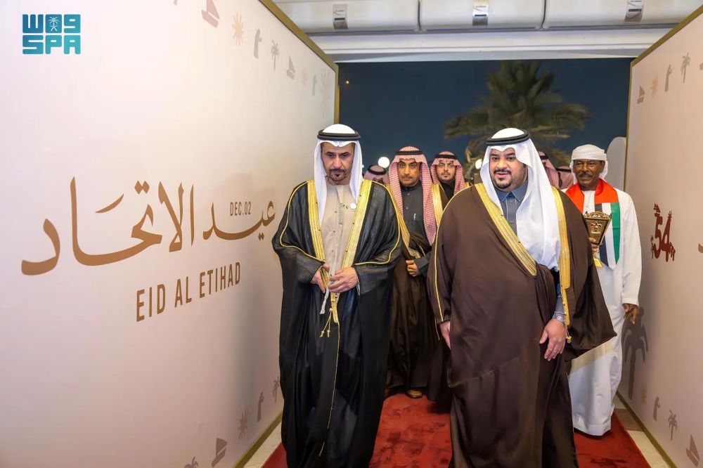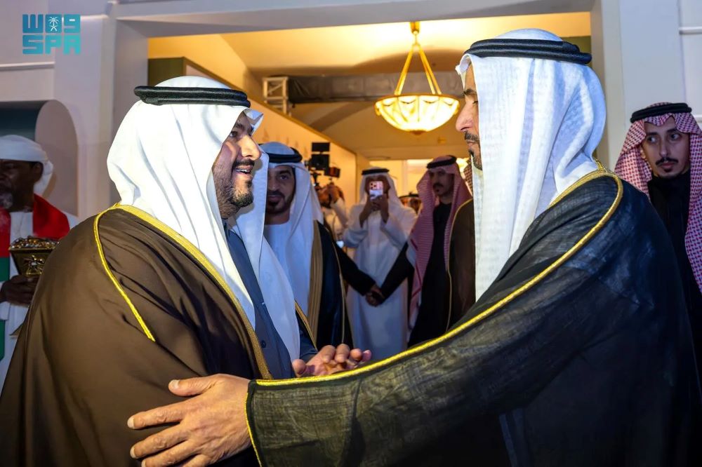 وكان في استقبال سموه لدى وصوله مقر الحفل سفير الإمارات العربية المتحدة لدى المملكة مطر بن سالم الظاهري، وعدد من منسوبي السفارة.