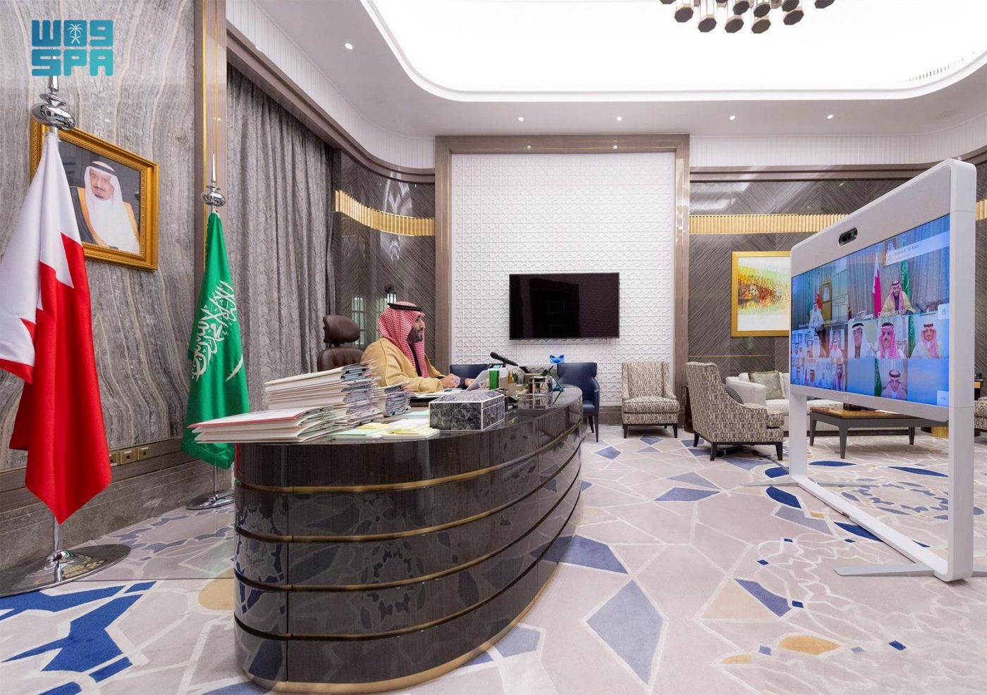 وعُقد الاجتماع الأول لمجلس التنسيق السعودي – البحريني برئاسة صاحب السمو الملكي الأمير محمد بن سلمان بن عبدالعزيز آل سعود ولي العهد رئيس مجلس الوزراء، وصاحب السمو الملكي الأمير سلمان بن حمد آل خليفة ولي العهد رئيس مجلس الوزراء بمملكة البحرين، عبر -الاتصال المرئي-.
