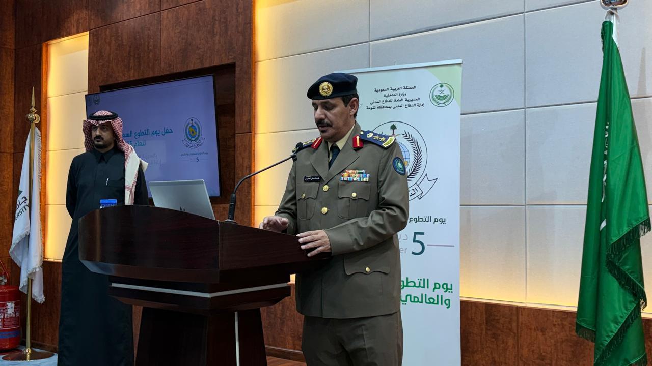 برعاية محافظ تنومة عبدالعزيز بن عبدالله آل عزيز وبحضور مديري ورؤساء الإدارات الحكومية والقيادات الأمنية والجمعيات والفرق التطوعية ومشايخ ونواب وأعيان المحافظة احتفلت إدارة الدفاع المدني بالمحافظة باليوم العالمي للتطوع 2025م وذلك على مسرح الكلية التطبيقية بالمحافظة.