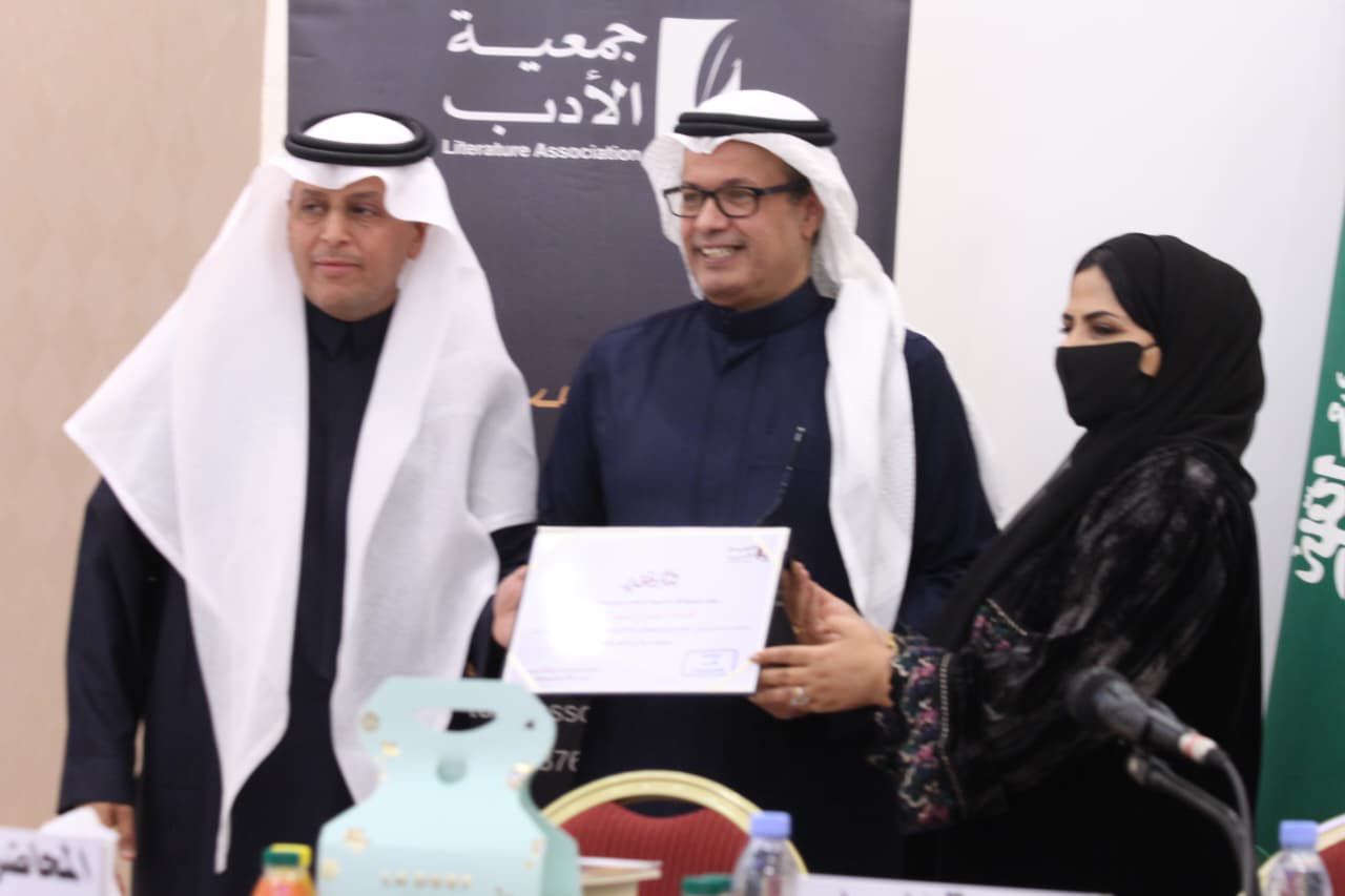 وفي نهاية المسامرة الأدبية قامت رئيس فريق سفراء الأدب الدكتورة مستورة العرابي ورئيس جمعية أدبي الطايف الأستاذ عطالله الجعيد بتكريم الضيف الأستاذ حسين بافقيه