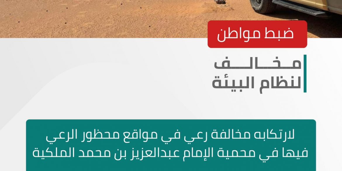 ضبطت القوات الخاصة للأمن البيئي مواطنًا مخالفًا لنظام البيئة، لارتكابه مخالفة رعي (4) أمتان من الإبل في مواقع محظور الرعي فيها في محمية الإمام عبدالعزيز بن محمد الملكية، وطُبّقت الإجراءات النظامية بحقه. وأكدت القوات أن عقوبة رعي الإبل غرامة (500) ريال لكل متن.
