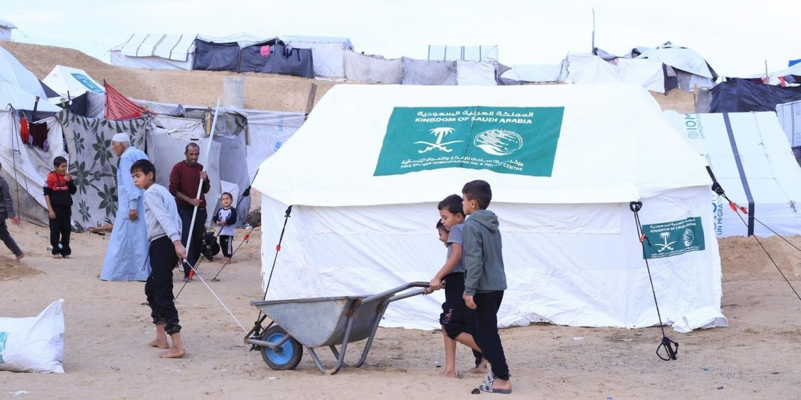 وزع مركز الملك سلمان للإغاثة والأعمال الإنسانية اليوم، عبر الشريك المنفذ المركز السعودي للثقافة والتراث مساعدات إيوائية جديدة تشتمل على كميات كبيرة من الخيام للأسر النازحة التي فقدت منازلها جراء الأزمة الإنسانية في جنوب قطاع غزة، تقيهم من منخفض جوي المصحوب برياح شديدة وأمطار غزيرة، وذلك ضمن الحملة الشعبية السعودية لإغاثة الشعب الفلسطيني الشقيق.