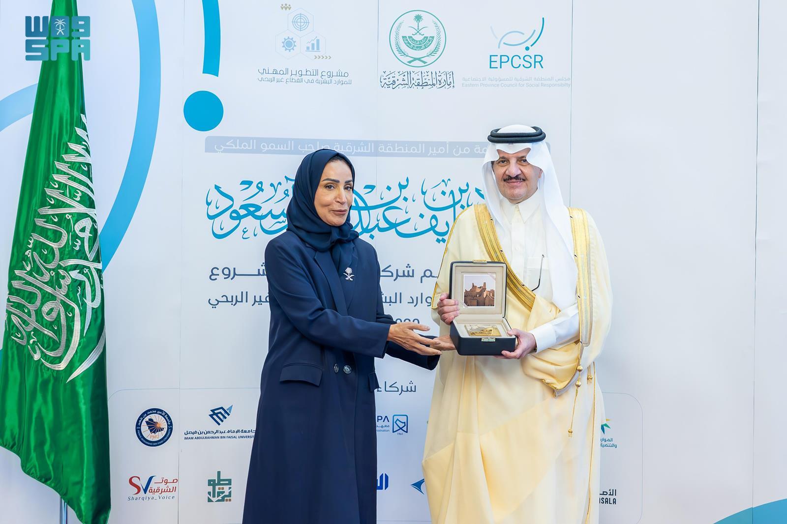 وفي ختام الحفل، كرّم سمو أمير المنطقة الشرقية جميع الشركاء نظير إسهاماتهم وتكاملهم في دعم مسيرة المشروع وتحقيق أهدافه الرامية إلى رفع مستوى الوعي وتنمية القدرات المهنية للعاملين في القطاع غير الربحي.