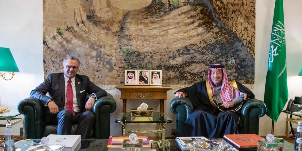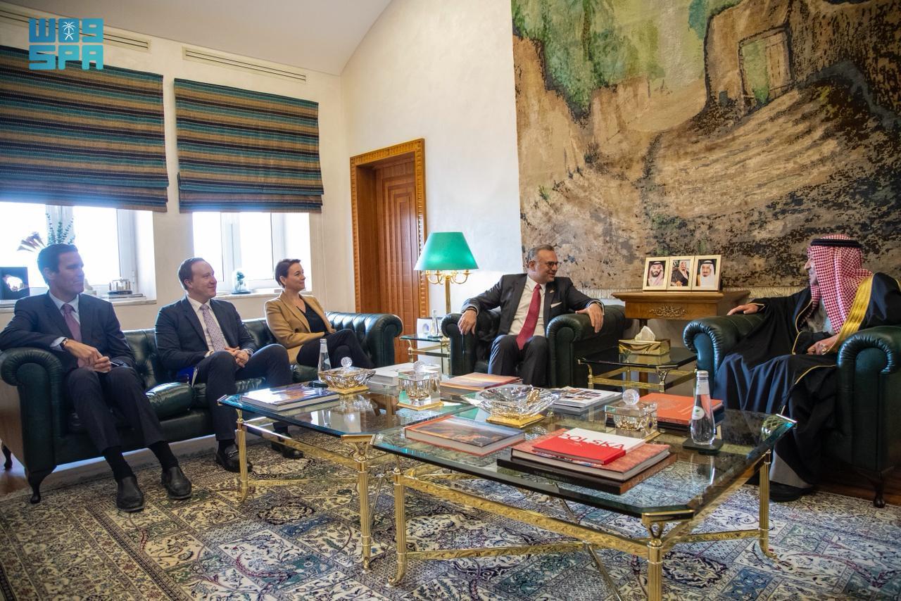 حضر الاستقبال، سمو مستشار وزير الخارجية للشؤون السياسية الأمير مصعب بن محمد الفرحان.