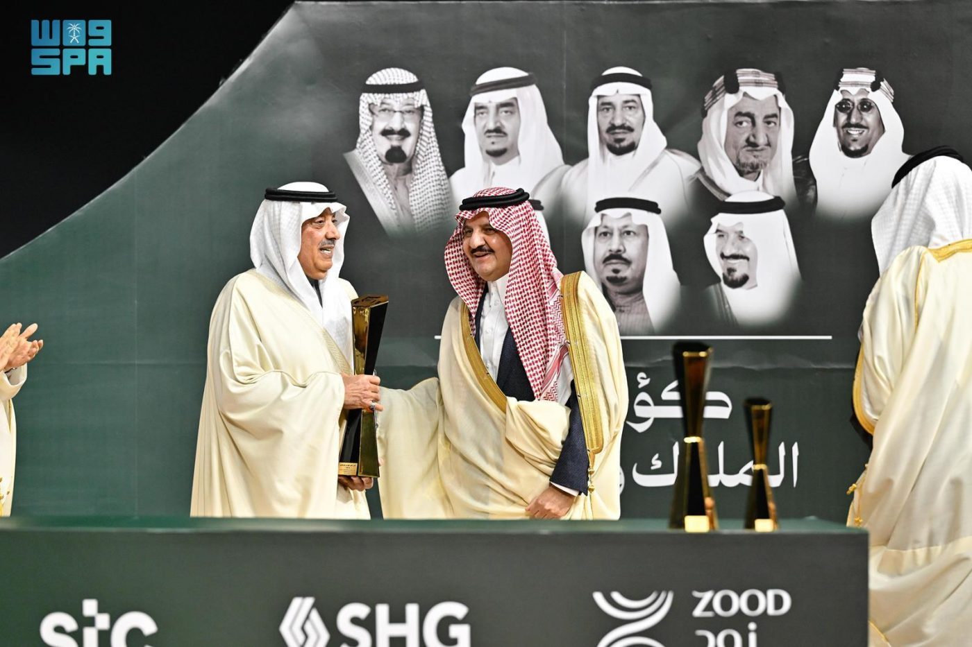 وفي كأس الأمير سلطان بن عبدالعزيز للأفراس “فئة ثانية – محلي” على مسافة 2000 متر، وبجائزة قدرها 700 ألف ريال، نالت الفرس أميرة الزمان، المركز الأول، وتسلم صاحب السمو الملكي الأمير فيصل بن خالد بن عبدالعزيز “مالك الفرس”، الكأس من صاحب السمو الملكي الأمير سعود بن سلطان بن عبدالعزيز.