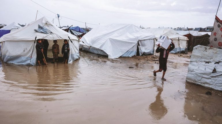 وتقول الأمم المتحدة في أحد تقاريرها إن أكثر من مليوني فلسطيني “مكتظون الآن في أقل من نصف مساحة قطاع غزة، بينما يفتقر معظم النازحين إلى مواد الإيواء الكافية لحمايتهم من الأمطار والرياح”.