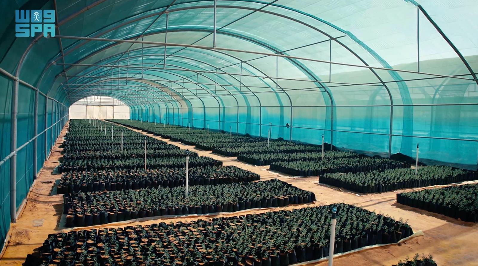 ويشكّل المشتل المركزي ومحطة أبحاث وإنتاج البذور البرية نواة الغطاء النباتي في المشروع، إذ يمتد على مساحة 60 ألف متر مربع، ويحتوي على 30 بيتًا محميًا بمساحة إجمالية تبلغ 15 ألف متر مربع، من بينها بيتان مخصصان للظل الصيفي بمساحة 7200 متر مربع. كما يضم بيت تقسية على مساحة 10 آلاف متر مربع مقسّمة إلى سبعة أجزاء، بطاقة إنتاجية تصل إلى 1.5 مليون شتلة سنويًا، تشمل 15 نوعًا نباتيًا رئيسيًا.