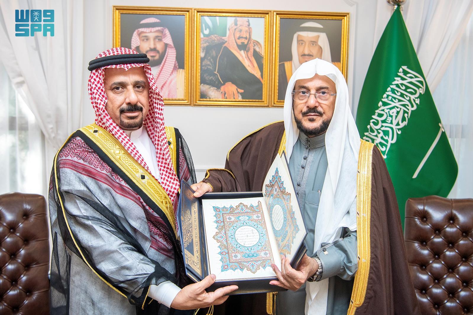 واستعرض الدكتور آل الشيخ جهود المملكة في خدمة الإسلام والمسلمين، والعناية بكتاب الله تعالى، ودعم العمل الإسلامي محليًّا ودوليًّا، ونشر قيم الوسطية والاعتدال، وتعزيز التعاون مع الدول الشقيقة بما يخدم قضايا الأمة الإسلامية.