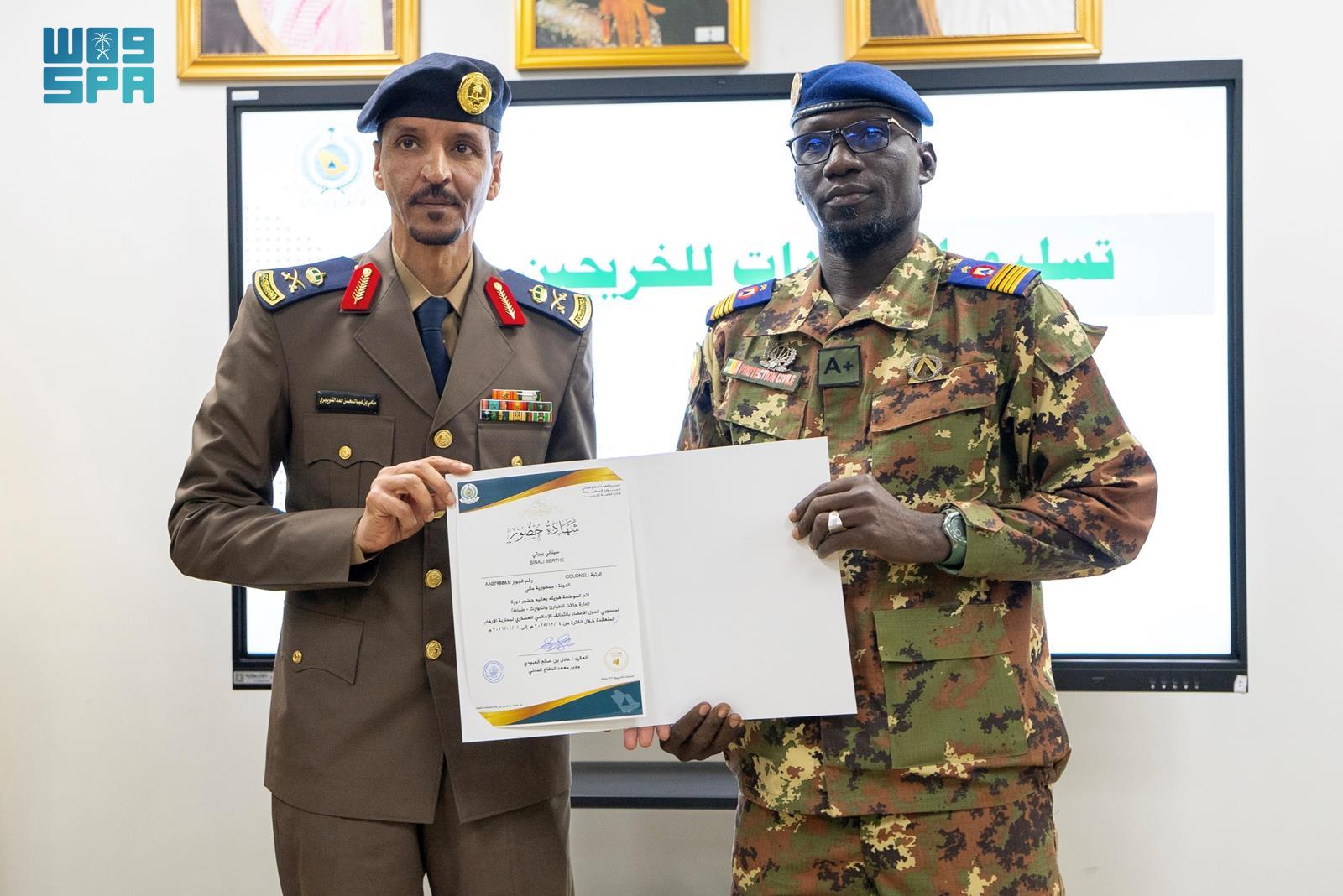 وحضر حفل الاختتام مدير الإدارة العامة لتطوير الموارد البشرية بالمديرية العامة للدفاع المدني اللواء سامي بن عبدالمحسن التويجري, والعميد سعود بن عشري العشري ممثل التحالف الإسلامي.
