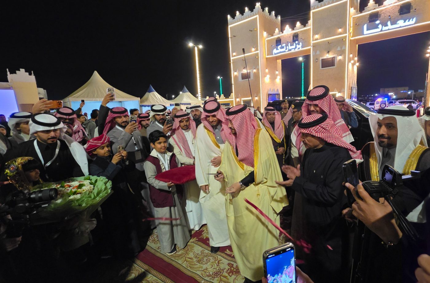 ورافق المحافظ خلال الافتتاح رئيس بلدية محافظة النعيرية المهندس محمد بن عبدالله المطيري، وعدد من مديري الإدارات والهيئات الحكومية بالمحافظة، حيث قام المحافظ بقص شريط الافتتاح معلناً عن انطلاق الفعاليات، بعد ذلك تجول والوفد المرافق له في أنحاء المهرجان والفعاليات المقامة وأركان الجهات المشاركة، التي بدأها بزيارة ركن بلدية محافظة النعيرية حيث استمع لشرح عن أعمال وجهود ومشاريع البلدية بالمحافظة خلال عام 2025م. تلى ذلك زيارة بقية أركان الجهات المشاركة، ومنها الكلية الجامعية بالنعيرية، ومستشفى النعيرية العام، ووزارة البيئة والمياه والزراعة، وأركان الجهات الخيرية، ثم تفقد المحافظ القرية الشعبية وأركان الأسر المنتجة ومسرح الأسرة والطفل وباقي أنشطة وفعاليات المهرجان.