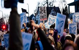 وهتف الحشد، الذي قدرته شرطة منيابوليس بعشرات الآلاف، باسم (رينيه جود – 37 عامًا) وشعارات مثل “ألغوا وكالة إنفاذ قوانين الهجرة والجمارك”، و”لا عدالة ولا سلام – أبعدوا إدارة الهجرة عن شوارعنا”.