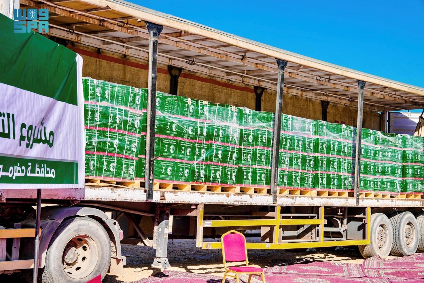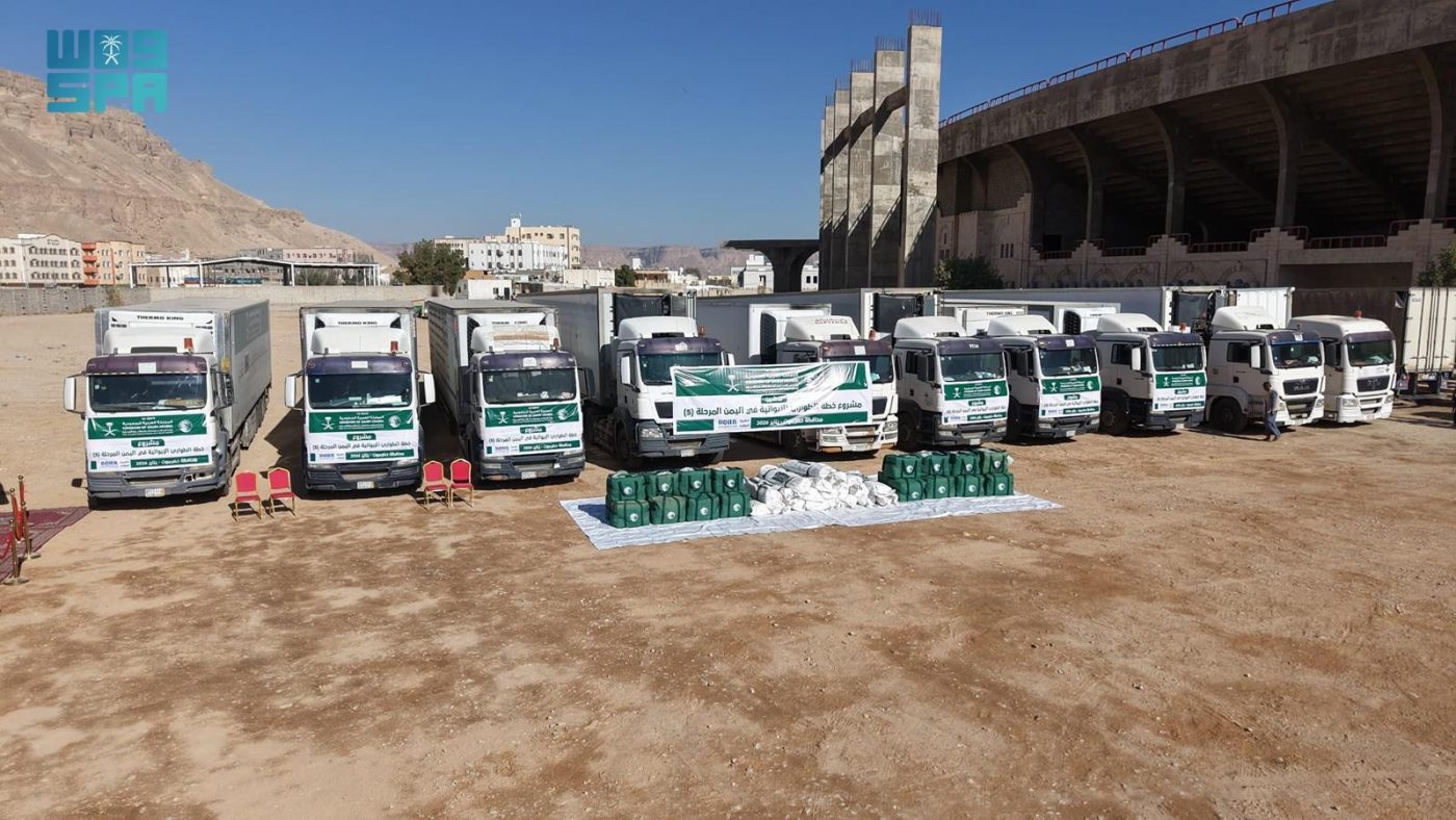 كما دشن مركز الملك سلمان للإغاثة والأعمال الإنسانية وصول قافلة إغاثية إلى مديريات وادي وصحراء محافظة حضرموت محملة بالخيام والحقائب الإيوائية، ضمن مشروع الطوارئ في اليمن.