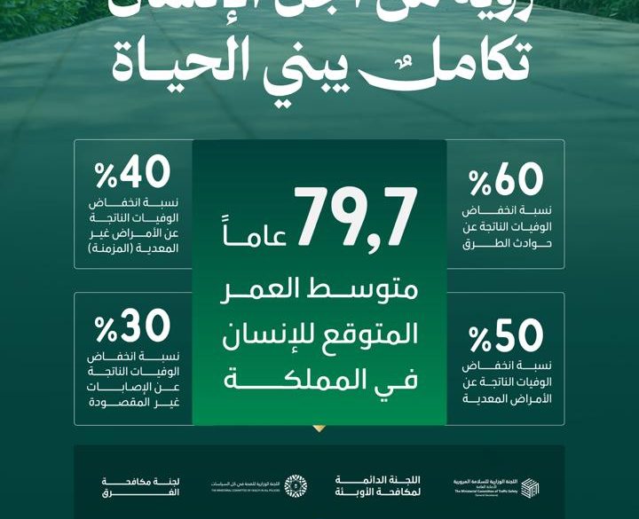 وأسفر التكامل بين الجهات ذات العلاقة عن تحقيق انخفاض بنسبة 60% في الوفيات الناتجة عن حوادث الطرق وتراجع الوفيات الناتجة عن الإصابات غير المقصودة بنسبة 30% نتيجة توحيد الأدوار التنظيمية والتنفيذية وتعزيز مفهوم الصحة في كل السياسات بما يدعم سلامة المجتمع واستدامة مكتسباته.